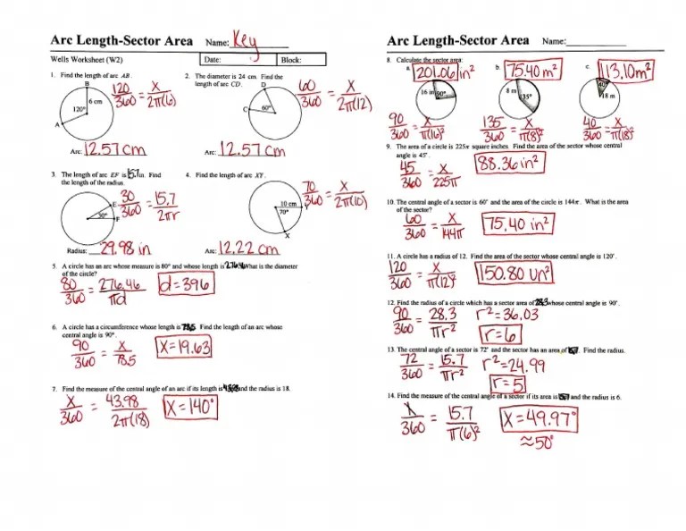 Arc Length Sector Area Worksheet - The length of arc ab is 6π cm. 10 aob is a sector of a circle, centre o and radius 9 cm. ( use !=3.14 ) example: The area of a sector \ (=πr^2 (\frac {θ}. Targeting gcse foundation level pupils, the area of a sector worksheet explores the areas of sectors and the length of arcs, including working backwards to find the angle or radius. Calculate the length of the minor arc ab.